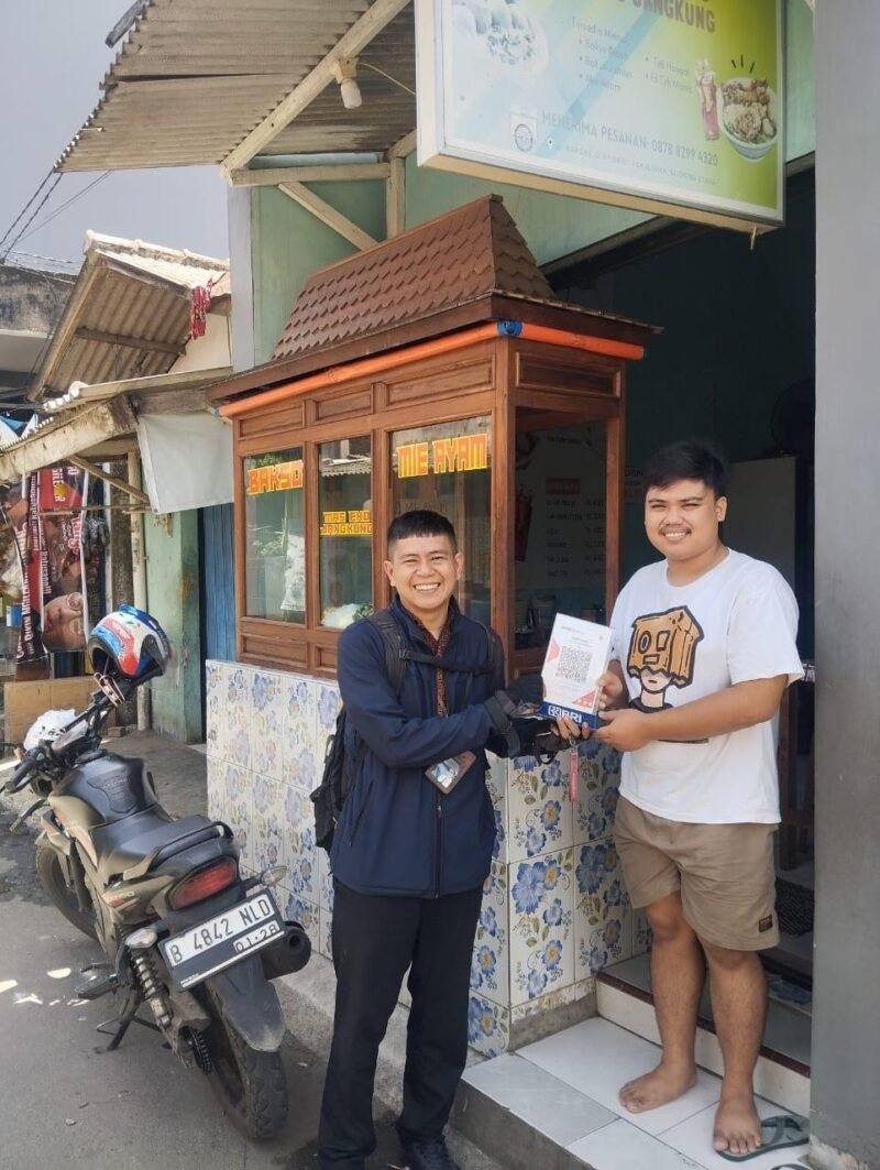 Tangerang, Suararealitas.co – Sebagai bagian dari program digitalisasi transaksi, Mantri BRI Unit BSD menyerahkan QRIS (Quick Response Code Indonesian Standard) BRI kepada pedagang bakso dan mie ayam di kawasan BSD, Selasa (26/11).