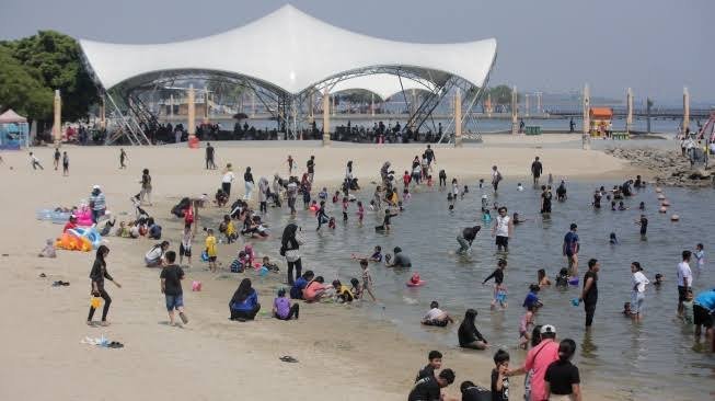 Indah (35), warga Jatinegara, Jakarta Timur, yang datang bersama dua anaknya, menuturkan bahwa mereka lebih dulu menghabiskan waktu di Ocean Dream Samudra sebelum melanjutkan rekreasi ke area pantai.