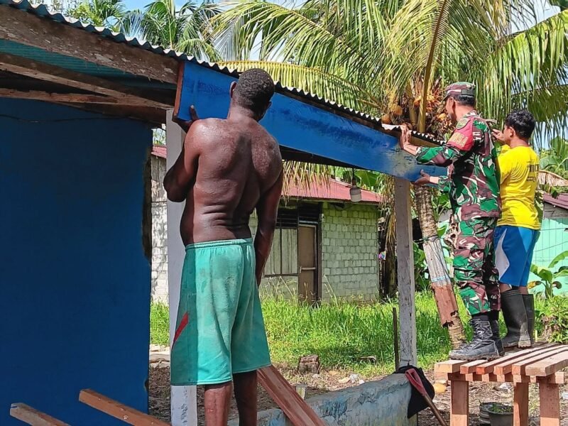 TIMIKA, Suararealitas.co – Babinsa Koramil 1710-07/Mapurujaya, Sertu Tangkas Budiono, melaksanakan kegiatan Komunikasi Sosial (Komsos) sekaligus membantu warga dalam pembangunan rumah milik Ibu Anastasia Pakawe di Kampung Hiripau, Distrik Mimika Timur, Selasa (2/12/2025).