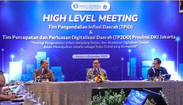 JAKARTA, Suararealitas.co – Pemerintah Provinsi (Pemprov) DKI Jakarta menggelar High Level Meeting (HLM) Tim Pengendalian Inflasi Daerah (TPID) dan Tim Percepatan dan Percepatan Digitalisasi Daerah (TP2DD) di Sari Pasific Hotel, Kebon Sirih, Jakarta Pusat, Kamis (4/12/2025).