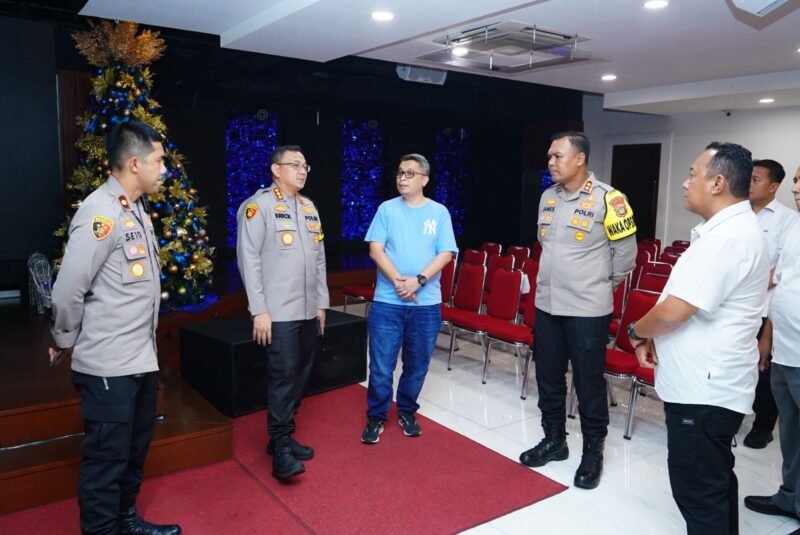 Jakarta Utara – Suararealitas.co || Kapolres Metro Jakarta Utara Kombes Pol Erick Frendriz, S.I.K., M.Si., bersama Wakapolres AKBP James H. Hutajulu dan Kapolsek Kelapa Gading Kompol Seto Handoko Putra, melakukan pengecekan langsung di dua gereja di Kelapa Gading, Senin (22/12/25) pukul 15.00 WIB. Kegiatan ini bertujuan memastikan kesiapan pengamanan tempat ibadah dalam rangka perayaan Natal dan Tahun Baru (Nataru) 2025/2026.