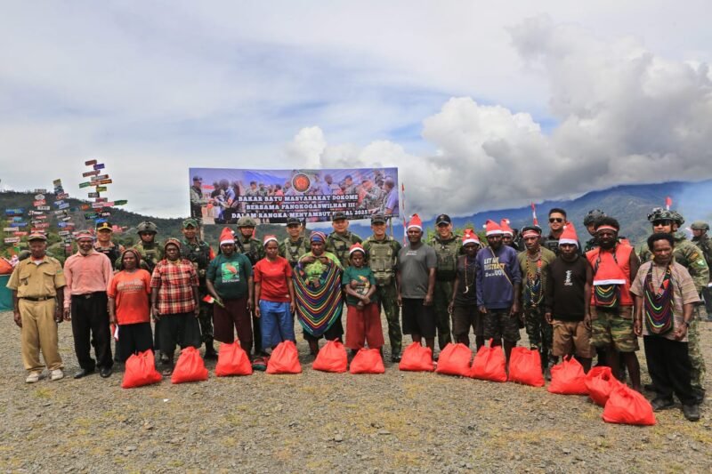 Pada kesempatan tersebut, Pangkogabwilhan III menyerahkan bantuan sembako kepada perwakilan masyarakat, bingkisan Natal kepada anak-anak serta meninjau langsung pelaksanaan pengobatan massal yang dilaksanakan oleh tim kesehatan TNI sebagai wujud kepedulian terhadap kesejahteraan masyarakat di wilayah pedalaman Papua.