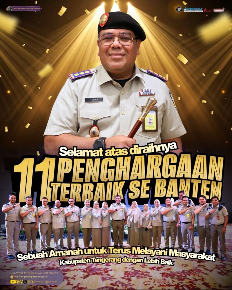 Kepala Kantor Pertanahan Kabupaten Tangerang, Febri Effendi, menyampaikan bahwa pencapaian ini merupakan hasil kerja keras seluruh tim dan dukungan dari masyarakat. “Sebelas penghargaan ini adalah amanah bagi kami untuk terus meningkatkan kualitas pelayanan. Kami tidak akan berpuas diri dan akan menjadikan ini motivasi untuk melayani masyarakat Kabupaten Tangerang dengan jauh lebih baik lagi,” ujarnya.