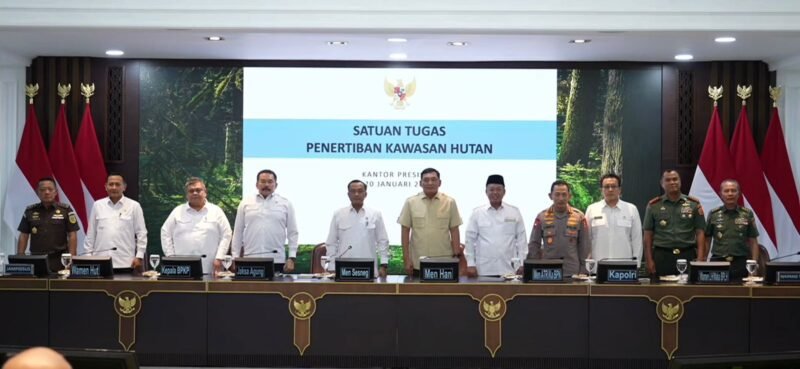 Konferensi pers tersebut dipimpin oleh Menteri Sekretaris Negara, Prasetyo Hadi. Turut hadir, Menteri Pertahanan, Sjafrie Sjamsoeddin; Kepala Kepolisian Negara Republik Indonesia, Listyo Sigit Prabowo; Jaksa Agung, ST Burhanuddin; Wakil Panglima TNI, Tandyo Budi Revita; Kepala BPKP, Muhammad Yusuf Ateh; Wakil Menteri Kehutanan, Rohmat Marzuki; Wakil Menteri Lingkungan Hidup, Diaz Faisal Malik Hendropriyono; Jaksa Agung Muda Tindak Pidana Khusus Kejaksaan Agung, Agung Febrie Adriansyah; serta Kepala Staf Umum TNI, Richard Taruli Horja Tampubolon.