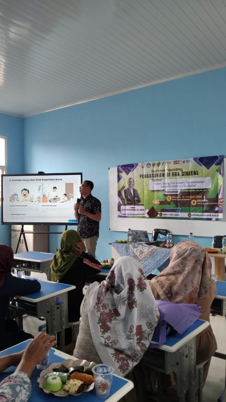 Seminar parenting tersebut mengangkat tema “Peran Orang Tua dalam Pembentukan Karakter Anak di Era Digital” dan dilaksanakan di lingkungan SMP IT Al-Hidayah Sukajaya, Kecamatan Sukajaya, Kabupaten Bogor, Jawa Barat.