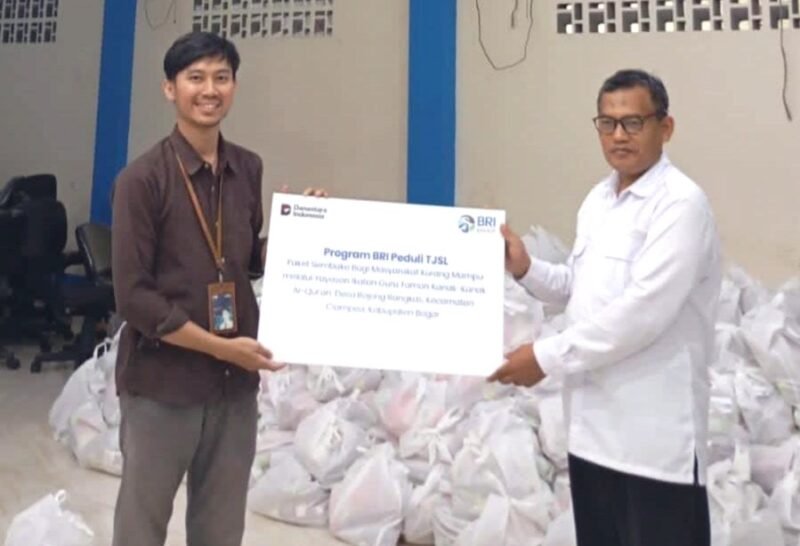 KAB. BOGOR, Suararealitas.co -Bank Rakyat Indonesia (BRI) Cabang Bogor Dewi Sartika Region 7 Jakarta 2 menyalurkan bantuan program BRI Peduli Tanggung Jawab Sosial Lingkungan (TJSL) berupa 5.000 paket sembako ke Yayasan Ikatan Guru Taman Kanak-kanak Al Qur’an di Desa Bojong Rangkas, Kecamatan Ciampea, Kabupaten Bogor.