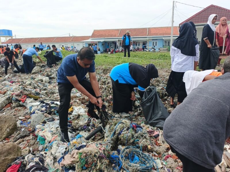 Atas kepeduliannya, warga Desa Tanjung Anom, Kecamatan Mauk, Kabupaten Tangerang, Banten, menggelar kerja bakti massal membersihkan pesisir Pantai Tanjung Kait, Jumat (6/2/2026).