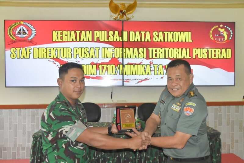 Timika, Suararealitas.co – Kodim 1710/Mimika menerima kunjungan Tim Pulsaji Data Satkowil Staf Direktur Pusat Informasi Teritorial Pusat Teritorial Angkatan Darat TA 2026 yang dilaksanakan di Makodim 1710/Mimika, Selasa (24/2/2026). Kegiatan tersebut berlangsung di Ruang Rekreasi Makodim 1710/Mimika, Kabupaten Mimika, sebagai bagian dari upaya peningkatan validitas dan optimalisasi data satuan kewilayahan.