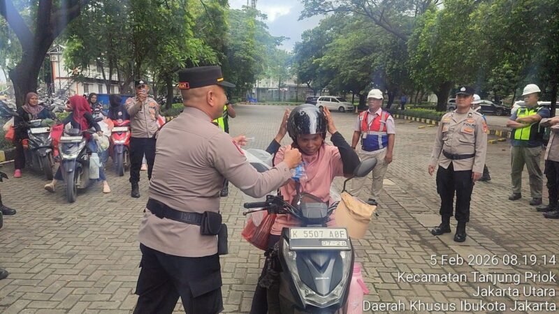Jakarta, Suararealitas.co – Dalam rangka meningkatkan kesadaran masyarakat terhadap keselamatan berlalu lintas, Satgas Preemtif Polres Pelabuhan Tanjung Priok melaksanakan kegiatan Ops Keselamatan Jaya 2026 dengan membagikan helm keselamatan berstandar SNI kepada pedagang pengguna sepeda motor yang tidak menggunakan helm.