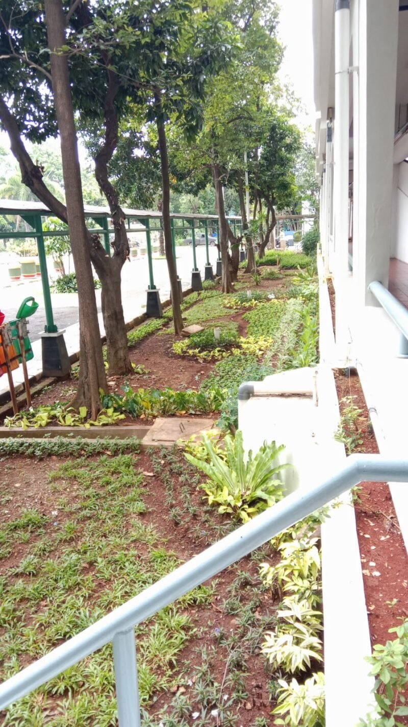Penataan ini tidak hanya bertujuan memperindah kawasan, tetapi juga mendukung konsep lingkungan kerja yang sehat dan asri. Dengan taman yang tertata rapi, pegawai dapat menikmati suasana hijau yang menenangkan di sela-sela aktivitas kerja.