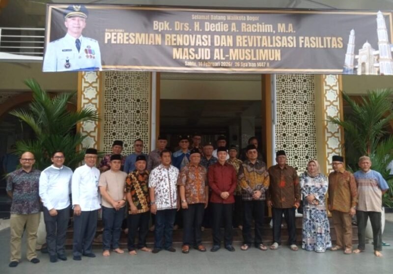 Bogor, Suararealitas.co –Dewan Kemakmuran Masjid (DKM) Al-Muslimun secara resmi meresmikan hasil renovasi Masjid Al-Muslimun yang beralamat di Jalan Kresna Raya No. 16, Bumi Indrafrasta I, Bantar Jati, pada Sabtu, 14 Februari 2026. Peresmian tersebut dilakukan langsung oleh Wali Kota Bogor, Dedie A. Rachim, serta dihadiri sejumlah tokoh masyarakat dan jamaah setempat.