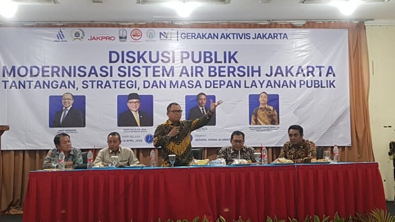 Jakarta, Suararealitas.co — Gerakan Aktivis Jakarta menggelar diskusi publik bertajuk “Modernisasi Sistem Air Bersih Jakarta: Tantangan, Strategi, dan Masa Depan Layanan Publik” pada Selasa (14/4/2026) di Gedung Joang 45, Menteng, Jakarta Pusat. Forum ini menjadi ruang strategis yang mempertemukan pemangku kepentingan untuk membahas arah kebijakan dan pengelolaan air bersih di ibu kota.